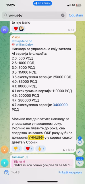 Navedena platforma traži od svojih korisnika da „plate nadoknadu za upravljanje u navedenom roku“, i tvrde da će „u slučaju neplaćanja sva sredstva na njihovom OKE računu biti donirana UNICEF-u u korist svakog deteta u Srbiji„.
